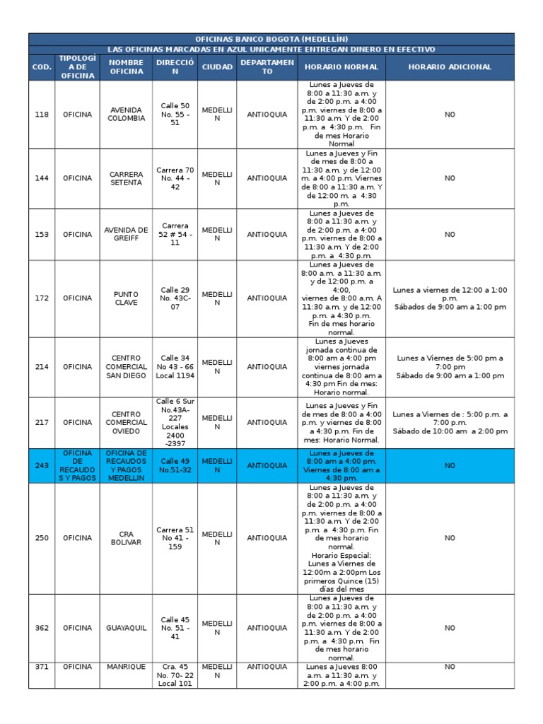 Lunes a viernes de 7:00 am banco de bogotá. Lunes a viernes de 7:00 am a 5:00 pm y sábados de 8:00 am a 12:00 m;